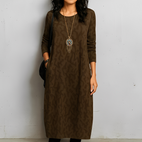 Pozostań ciepła i szykowna w tym sezonie dzięki tej sukience midi z długimi rękawami dla kobiet Abdelaine, zaprojektowanej, aby połączyć komfort i styl. Dzięki swojej korzystnej długości midi i miękkiemu, ciepłemu materiałowi, jest idealna na swobodne wyjścia, do pracy lub na spotkania świąteczne. Praktyczne kieszenie boczne dodają funkcjonalności bez kompromisów w elegancji. Jej wszechstronny design łatwo łączy się z butami, płaskimi butami lub obcasami, tworząc kompletny zimowy look. Wygodna, elegancka i funkcjonalna, ta sukienka to niezbędnik w Twojej sezonowej garderobie.