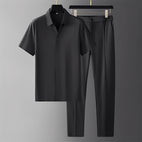 Zestaw Alexander – Luxe polo i męskie spodnie łatwo dodaje elegancji do twojej garderoby, zapewniając komfort. Zrobiony z najlepszych materiałów, zestaw łączy eleganckie polo z idealnie dobranymi spodniami, tworząc schludny i harmonijny zestaw. Idealny na nieformalne wydarzenia, spotkania towarzyskie, a także do luźniejszego biura, zawsze zapewnia stylowy i zadbany wygląd. Dzięki swojej ponadczasowej formie i dopasowanemu krojowi, jest uniwersalnym elementem w szafie każdego mężczyzny. Doświadcz doskonałego połączenia luksusu i codziennej wygody z zestawem Alexander.