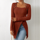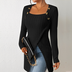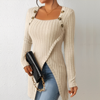 Góra Alfreda łączy elegancję i komfort dzięki miękkiej, prążkowanej dzianinie i przyciągającym wzrok guzikom. Asymetryczny design dodaje nowoczesnego akcentu klasycznej sylwetce, co czyni ją idealną na pracę, swobodne wyjścia lub specjalne wydarzenia. Lekka, ale wygodna, łatwo łączy się z dżinsami, spódnicą lub dopasowanymi spodniami. Dostępna w wielu kolorach, ta góra jest zaprojektowana, aby uzupełniać każdą garderobę.