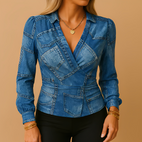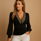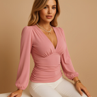 Athénaïs - Bluzka z długimi rękawami i dekoltem w serek dla kobiet