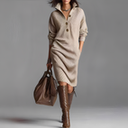 Camryn - Modna sukienka dzianinowa z guzikami i kołnierzem dla kobiet