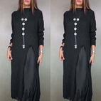 - Strój all-in-one: połączenie swetra z dzianiny i dopasowanej sukienki oferuje gotowy do noszenia wygląd, bez konieczności szukania pasujących elementów.
