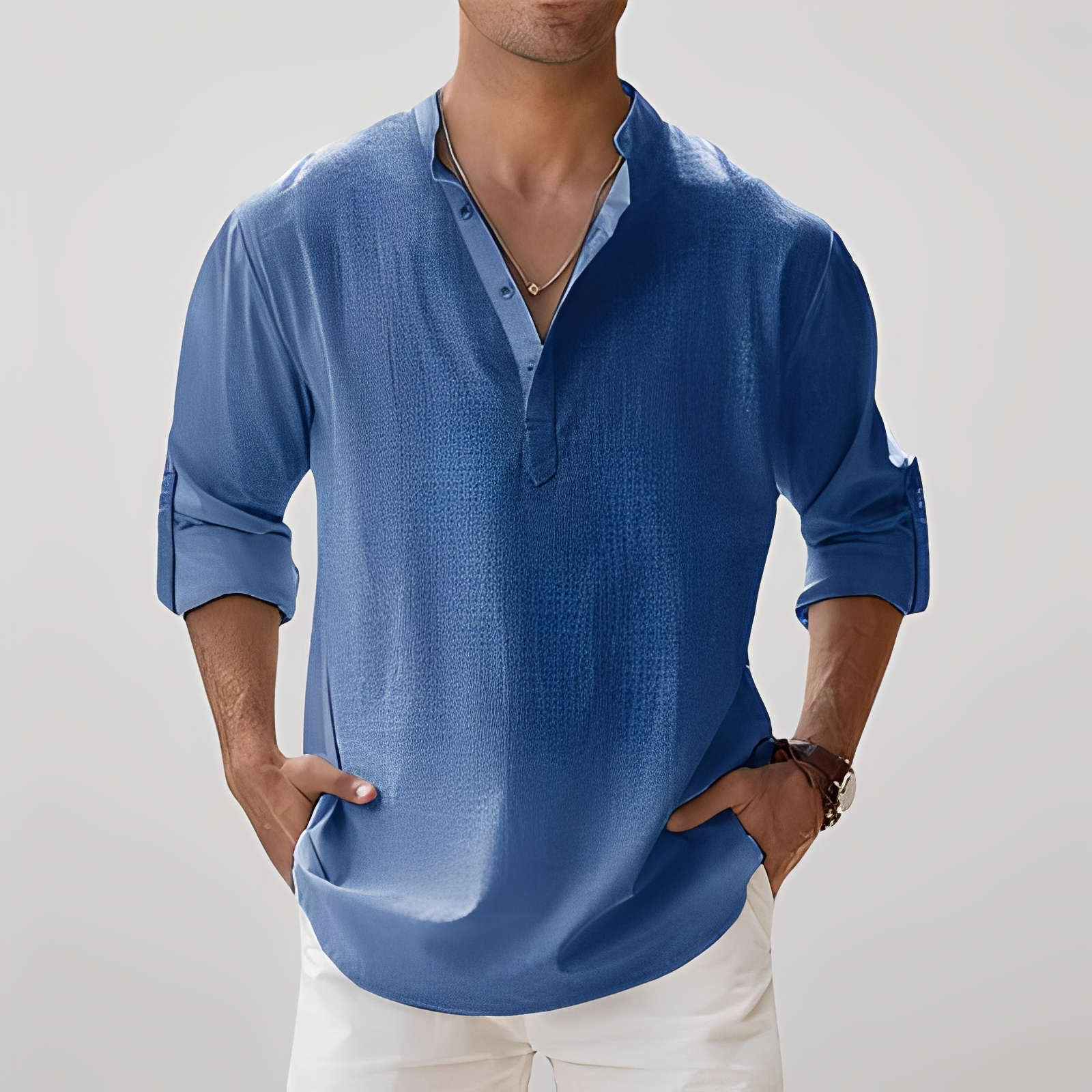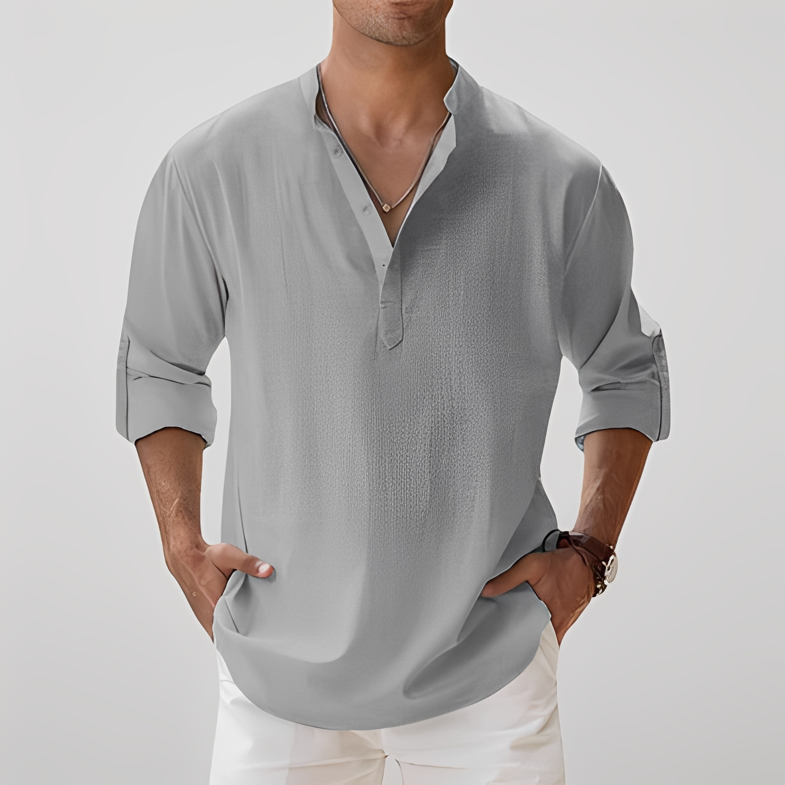 Długa koszula z rękawami Freddy dla panów została zaprojektowana, aby oferować najwyższy komfort i elegancję, zawsze na czasie. Wykonana z lekkiego, przewiewnego materiału, daje uczucie świeżości nawet w ciepłym klimacie, jednocześnie zachowując schludny i luźny wygląd. Jej tradycyjny krój i długie rękawy czynią ją doskonałą do noszenia samodzielnie lub jako część warstwowych stylizacji zarówno na eleganckie, jak i codzienne wyjścia. Wszechstronna i łatwa do dopasowania, świetnie komponuje się z chinosami, eleganckimi spodniami lub dżinsami. Komfortowa, przewiewna i szykowna, koszula Freddy to niezbędny element w nowoczesnej męskiej garderobie.