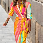 Géraldine - Sukienka kopertowa z nadrukiem elegancka dla kobiet
