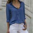ZIMOWA WYPRZEDAŻDionne - Elegancka bluzka z długim rękawem z satyny dla kobiet