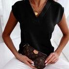Jordana - Luźna koszulka z krótkim rękawem i dekoltem V dla kobiet