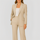 Odkryj elegancję damskiego zestawu Maeva z długim blezerem i spodniami w nowoczesnym stylu. Zestaw ten modeluje sylwetkę, podkreślając jej atuty, a jednocześnie zapewnia komfort przez cały dzień. Idealny na spotkania biznesowe, formalne okazje czy eleganckie wyjścia, dodaje szyku i wszechstronności Twojej szafie. Dzięki prostej formie i czystym liniom łatwo połączyć go z obcasami lub płaskimi butami, wzbogacając każdą stylizację. Bez względu na to, czy wybierasz się do biura, czy na wieczorne spotkanie, ten komplet zapewnia spokojny i elegancki wygląd.