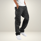 Noah – Męskie Spodnie Cargo z Kieszeniami łączą komfort, wszechstronność i nowoczesny wygląd. Solidna konstrukcja sprawia, że sprawdzają się świetnie jesienią i zimą, a w życiu codziennym oraz podczas odpoczynku są niezawodnym towarzyszem. Pojemne kieszenie cargo mają wystarczająco przestrzeni na wszystkie potrzebne rzeczy, a wygodny fason zapewnia pełną swobodę ruchu. Niezależnie od tego, czy wybierasz się na spacer, do biura, czy w podróż – te spodnie są uniwersalne i nadają swobodny ton każdej stylizacji.
