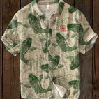Ogie - Koszula Lniana z Artystycznym Wzorem Inspirowanym Wintage Rybami