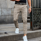 Ta spodnie męskie w kratę łączą klasyczny wzór z nowoczesnym krojem, zapewniając komfort i styl.