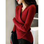 ZIMOWA WYPRZEDAŻReamina - Luksusowa bluzka damska z asymetrycznym kołnierzykiem
